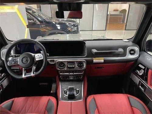 23款奔驰G63 (配置|询价)车内越野气息十足,多处硬朗设计使其具有硬派越野车风格。采用现下流行的双连屏设计,让车内还具有一些科技感。双连屏界面显示清晰,易读性不错。方向盘为三辐式式设计,除了常见的功能按键区域之外,还在下方加设了一些按钮,驾驶仪式感十足,也可以让驾驶员专注力提升,不分神去操作其他功能。方向盘支持各种导航、电话、以及娱乐功能的控制按键。中控区域还采用了AMG车型独有的模拟时钟IWC设计,时钟中的数字和指针均采用纯金属材质,质感不错。