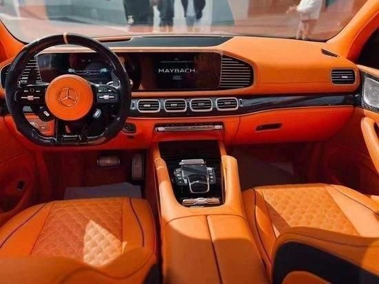 奔驰GLS450改装升级迈巴赫和巴博斯内饰整体皮饰改成了红米色的设计,替换了钢琴黑条纹桃木饰板,桃木方向盘,加装了HUD抬头显示系统,主机系统也刷了迈巴赫的开机画面,车内随处可见的迈巴赫标志,打造无出其右的考究质感。