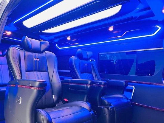 丰田海狮13座/丰田海狮10座/进口海狮7座8座9座专业改装航空座椅,定制埃尔法 (配置|询价)原车座椅,隔断,木地板,鹿皮顶棚,星光顶,冰箱,车载电视。。。。。。。采用了复古式的设计风格来致敬初代车型。与车身颜色不同的前保险杠、而A柱至D柱则采用了黑色涂装,以及白色抛边的轮拱,再搭配15英寸黑白双色的复古式轮圈,无一不是在体现出上个世纪 的设计元素。