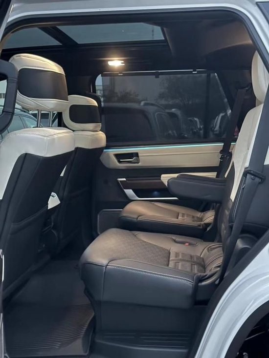 配置:全景天窗,雷测,360环影,胎压监测,流水转向自适应LED灯,外后视镜加热,一键升窗,智能钥匙,2+2+3七座布局,半苯胺真皮内饰座椅,方向盘/座椅电动调节,液晶仪表,氛围灯,14寸中控屏幕,14扬声器JBL音响带低音炮,无线充电,感应雨刷,牵引技术包(包括数字显示后视镜,显示直线拖车路径),方向盘加热,驾驶员座椅记忆/腿托,前后排座椅加热通风,二排和三排遮阳帘/隐私玻璃,后部和货区120V/400w交流电源插座,发光储物箱和手套箱,仪表板/中控台/车门板软包,电尾门一脚踢,22合金轮毂,抬头显示,电动踏板。