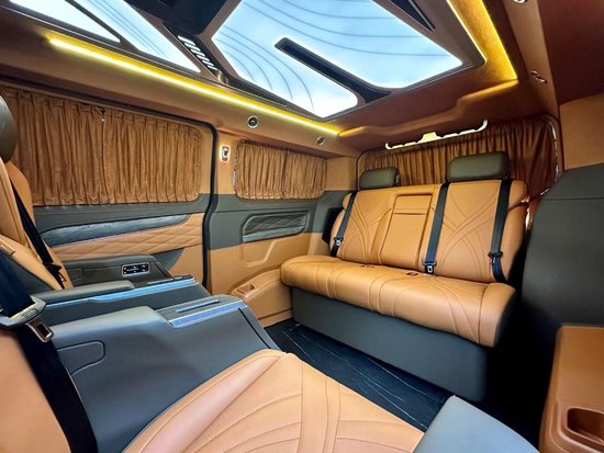 座椅的功能性非常强大,中间两个豪华的航空大座椅,带有通风,按摩,加热,腿托等多项电动调节,此外,座椅两侧均有无线充电。用起来也是十分的方便。座椅都是深度包覆,皮质柔软,触感很强,缓解疲劳有一套。第三排的沙发床180度的平躺,日常休息睡觉都可以的,所以当个床车使用也未尝不可呀。现在这款车型,柴油版汽油版均有现车,各位老板怎么考虑呢?