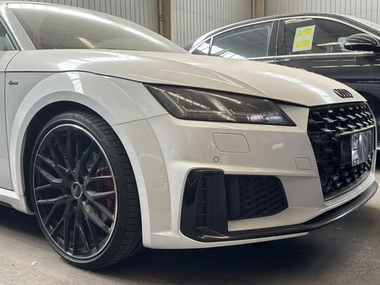 奥迪TT外观方面,整体延续了TT RS系列家族式力量型的轮廓造型。前脸熏黑的中网搭配獠牙式的LED日间行车灯,还有延续至前脸中网且有一定弧度的发动机盖板,整个前脸造型营造出一种蓄势待发的俯冲感。当然,与众不同的地方还得看黑色的品牌LOGO,它算是整个前脸的点睛之笔。