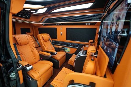 2023款奔驰斯宾特改装后上蓝牌3.0T排量四驱/2.0两驱,带2张航空按摩座椅、3人座联排沙发座椅和2张电动伸缩秘书椅,冰箱、咖啡机、BOSE音响系统、前后舱对讲机、5G无线WIFI、52寸电动隔断升降液晶屏、和吧台隐藏式小桌板;面对客户的礼赞和市场的信赖,奔驰斯宾特改装商务车不负厚望,以经典、尊贵的形象迎合中国高端市场需求,更好地满足领袖级用户对豪华MPV的需要。
