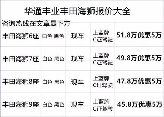 上海长宁区丰田海狮4s店电话 丰田海狮6座7座8座9座价格