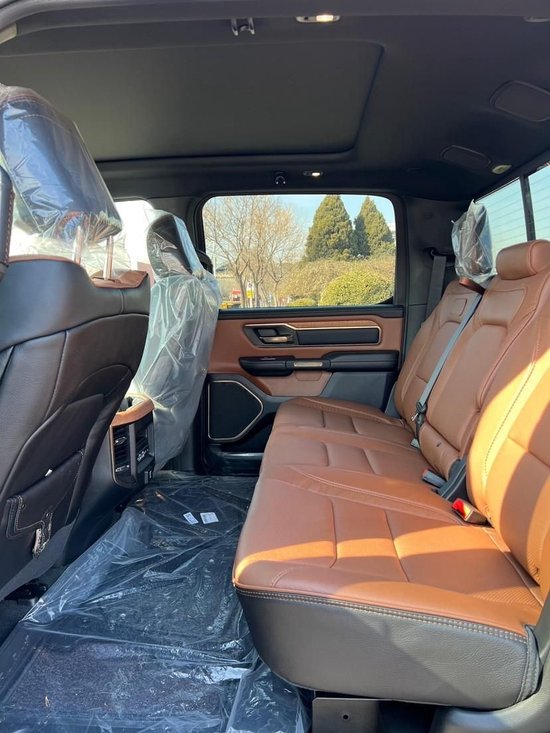 道奇公羊长角号在你打开车门的一瞬间,你就能够感受到这款皮卡的豪华感扑面而来,肉眼能够看到的地方几乎全是皮革材质,仪表板、车门把手、门饰板都是百分百全粒面皮革。对于座椅还是有些许不同,座椅表面还镶嵌有鳄鱼浮雕图案,手套箱以及中控台等处也均有这样的铭牌标记,时刻提醒你这款皮卡身份的高贵。此外,一些细节点缀均采用镀镍的形式,并且为了与长角号这个名称更为贴切,车内多处采用了实木材质,营造一种乡村的感觉!