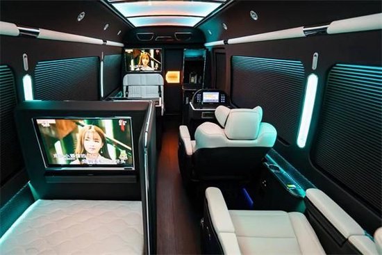 丰田考斯特7座房车既然是作为房车,灯光的设计也是突出了温馨和舒适。丰田考斯特车内安装A380航空顶灯,粉色的灯光展示出温馨,蓝色的灯光突出宁静。明亮的LED灯满足我们照明和阅读办公的需要,北京华通丰业丰田考斯特改装在内饰灯光的设计上也是体现了别出心裁。同时丰田考斯特7座房车内饰增加车载冰箱,去旅行可以储藏许多美味的水果饮料和零食,这也是很不错的选择。车内还配备有高端音响、空调、娱乐设备等,让乘客在旅途中享受更为舒适和愉悦的乘车体验。