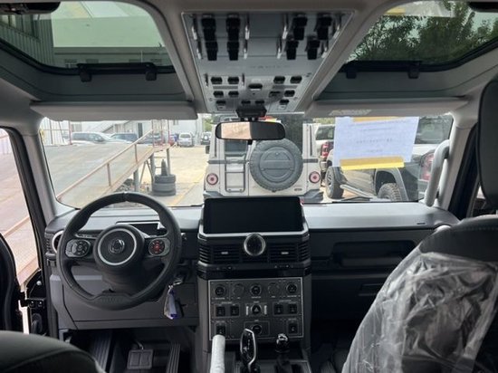 内饰方面取消了仪表盘,配备12.3英寸中控大屏,下方为空调出风口,而且车内保留了大量的实体按键,两幅式多功能方向盘造型时尚,新车采用五座布局,座椅由织物和皮质拼接设计,整个内饰主要以实用为主,这也符合整车硬派越野的定位。