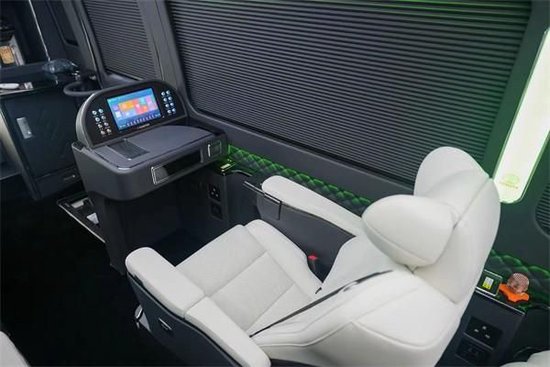丰田考斯特改装商务车的改装设计不仅仅只是体现您的高贵身份,更是为了给给您的商务旅途带来方便,因此在设计上我们更考虑了您在办公中的所有需求。在车顶处添加LED灯,方便您在旅途中观看书籍或者工作材料。高档办公桌双人汇报新,并且配备了方便的电脑以及手机充电接口,方便而又安全。