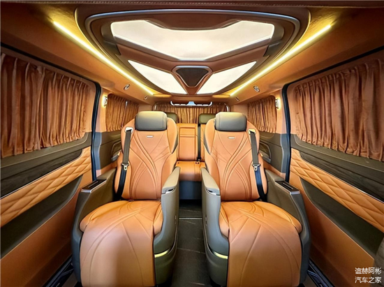 二排航空座椅具备通风,按摩,加热,旋转,腿托等功能,其中人体工程学6点位智能气动按摩,旅途的生活也能多一些享受与自在。定制顶灯更新过后整体层次也是提升不少,有多种颜色可以调节,适应车内不同的用车氛围。