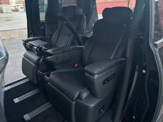 雷克萨斯LM350前后排隔板上方有一个石英钟,车顶为空调和天窗的控制按键,坐在后排的乘客自然不会亲自起身操作,所有的功能均可通过两个座椅之间的触屏完成设置。后排两个类似高级按摩椅一样的后座位于后车厢的中间位置,座椅内部配有独立的减震模块来提高舒适性,通风、按摩、加热这些功能都具备。