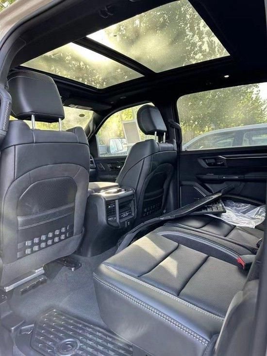 道奇公羊霸王龙做工则完全摆脱了美式的粗糙感,边缘、接缝都处理的很精细,真皮座椅各自独立,配有加热、按摩等舒适功能,每个座椅独立配一个操控手柄,各项功能由乘坐者自己控制。道奇公羊皮卡车型全部座椅均采用真皮包裹,前排还配备了十分实用的运动座椅。
