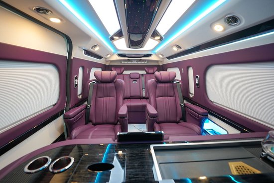 丰田海狮整车升级了加强型的隔音隔热处理,车内带空气净化系统,无线充电系统。在进门侧加装了氧化铝脚踏带迎宾灯的,整车都是采用纳帕级皮质进行包覆的,侧壁红木装饰,手动百褶窗帘,后舱暖风系统,最后说说棚顶灯光,这个有智能触摸控制系统。灯光超级棒。