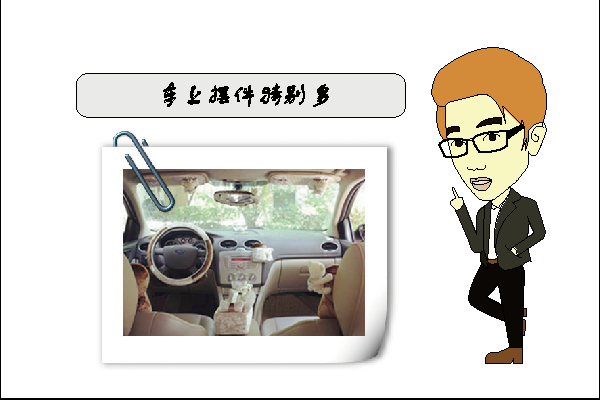 四。车里摆件特别多 爱车心切谁都理解,可能咱们能不能换个方式,不是摆一堆乱七八糟的东西再喷得香香的就是爱车了,车用香水都有毒你知道么,挂的那些东西还有摆设很容易影响视线你知道么,如果不小心发生事故,摆的东西有可能还会再砸你一下。