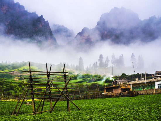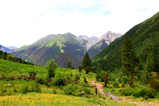 简介:扎尕那天然石城内,土地平坦,绿草如茵,村舍相望,鸡犬之声相闻,俨然一幅桃源景象。正北是璀璨生辉、巍峨恢宏、雄伟壮观的迭山主脊光盖山石峰,另外三面皆是秀峰环拱,苍松翠柏郁郁葱葱,犹如高峻雄浑、坚不可推的城墙,把扎尕那四村一寺围在城中,其中东哇村和桑拉寺院正巧座落于石城中央。城内左上角还有一道出口,是由石山断裂形成的石质狭道,南北走向,长百余米,宽仅数米,石峡两面是垂直挺拔的岩壁,一条小溪悬泻而下,声响如雷。此道亦是洮叠古道中的险关。此为石城“后门”。