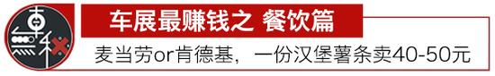 不过,车展里最赚钱的还是麦当劳、肯德基这种快餐了。车展有参观者、工作人员、还有媒体记者,保守估计每天有5万人在麦当劳内就餐,按照人均40元计算,大概一天的餐饮消费总量为200万元。