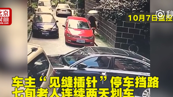 视频:车主“见缝插针”停车挡路 七旬老人连续两天划车