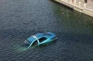 老司机忘踩刹车 出租车一头冲入河里