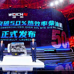 在产品发布会上,德国博世集团、奥地利AVL、德国FEV、美国汽车工程师学会、中国机械工业联合会、中国内燃机工业协会、中国汽车工程学会等全球权威机构和专家分别发来视频,对潍柴集团取得的这一历史性突破表示祝贺。全球最大的汽车零部件供应商博世集团董事会主席兼首席执行官沃尔克马尔•邓纳尔表示,潍柴集团成功开发了50%热效率的新型重型柴油发动机,这是一项具有重要意义的成就,这是柴油机发展史上的历史性突破,树立了全球柴油机热效率的新标杆;凭借这一创新,潍柴成为了世界一流柴油机制造商。世界权威内燃机研发机构奥地利AVL公司董事长兼首席执行官赫尔穆特•李斯特认为,潍柴柴油发动机达到了50%以上的热效率,这代表着世界上领先的性能,融合了全球动力行业所需的许多技术和应用改进。世界权威内燃机研发机构德国FEV首席执行官史蒂芬•皮辛格认为,对于运输行业来说,满足50%热效率柴油机的推出,预示着行业向低成本、高效益和环境友好又迈出了坚实一步。中国内燃机工业协会秘书长邢敏表示,内燃机的技术进步得益于热效率的提升,热效率的提升对整个内燃机的节能减排有举足轻重的作用。