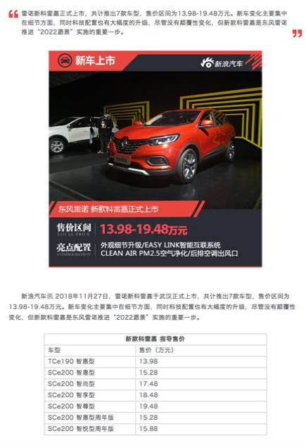 从东风雷诺副总裁洪浩的专访中,新浪汽车也向用户传达了东风雷诺“悦心设计、暖心科技、安心畅行”三大品牌DNA,从品牌价值的角度,不断提升用户对新科雷嘉上市的期待值,以及对东风雷诺的品牌好感度。