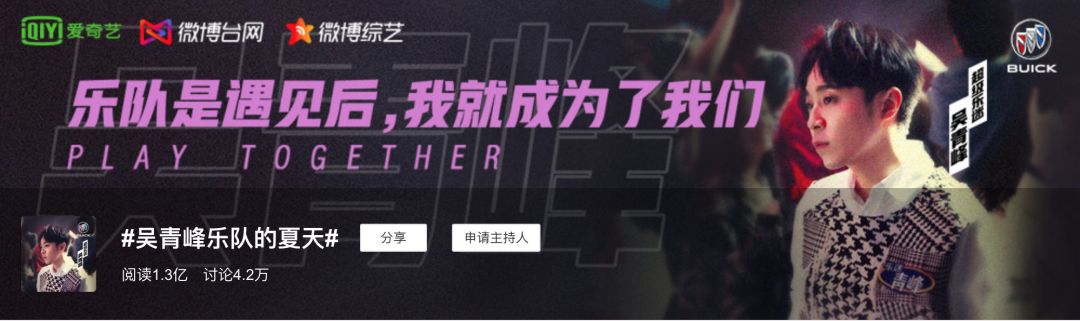 据统计,自5月24日—6月4日,全网涉《乐队的夏天》中与别克相关信息共14.7万条,微博占比88%,是相关信息传播的主要平台。微博平台《乐队的夏天》相关话题中#吴青峰乐队的夏天#,吸引年轻人参与,共引发阅读量 1.3亿、讨论量 4.2万。