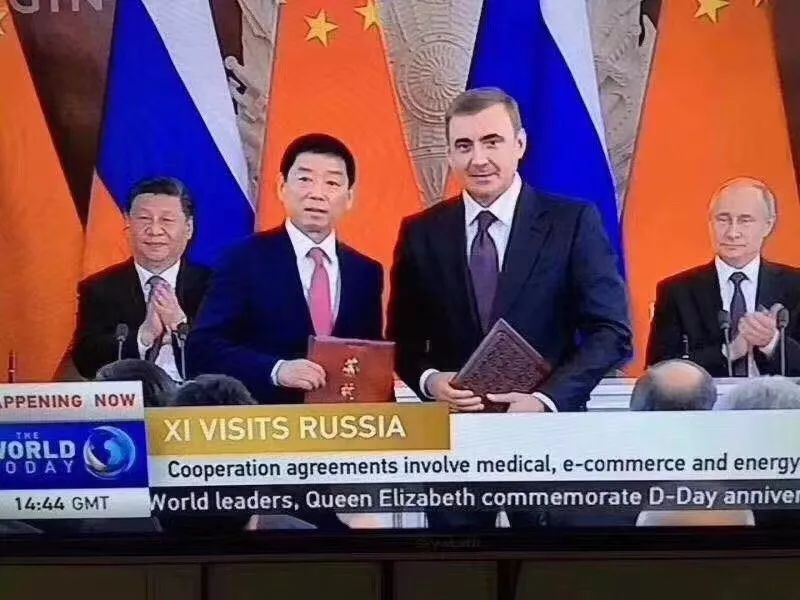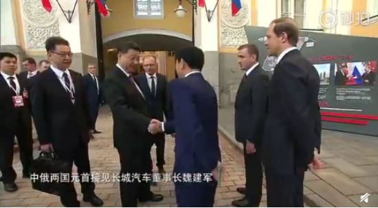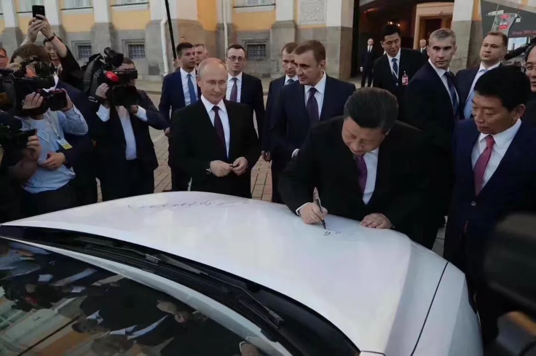 当天,中俄两国元首在莫斯科克里姆林宫接见长城汽车董事长魏建军,并见证长城汽车和图拉州签署工厂第二阶段投资意向协议。同时,两国元首共同在克里姆林宫参观了长城汽车俄罗斯图拉工厂下线汽车展,并近距离了解了长城汽车俄罗斯图拉工厂下线首款“全球车”长城哈弗F7,并分别在该哈弗F7的引擎盖上签名。