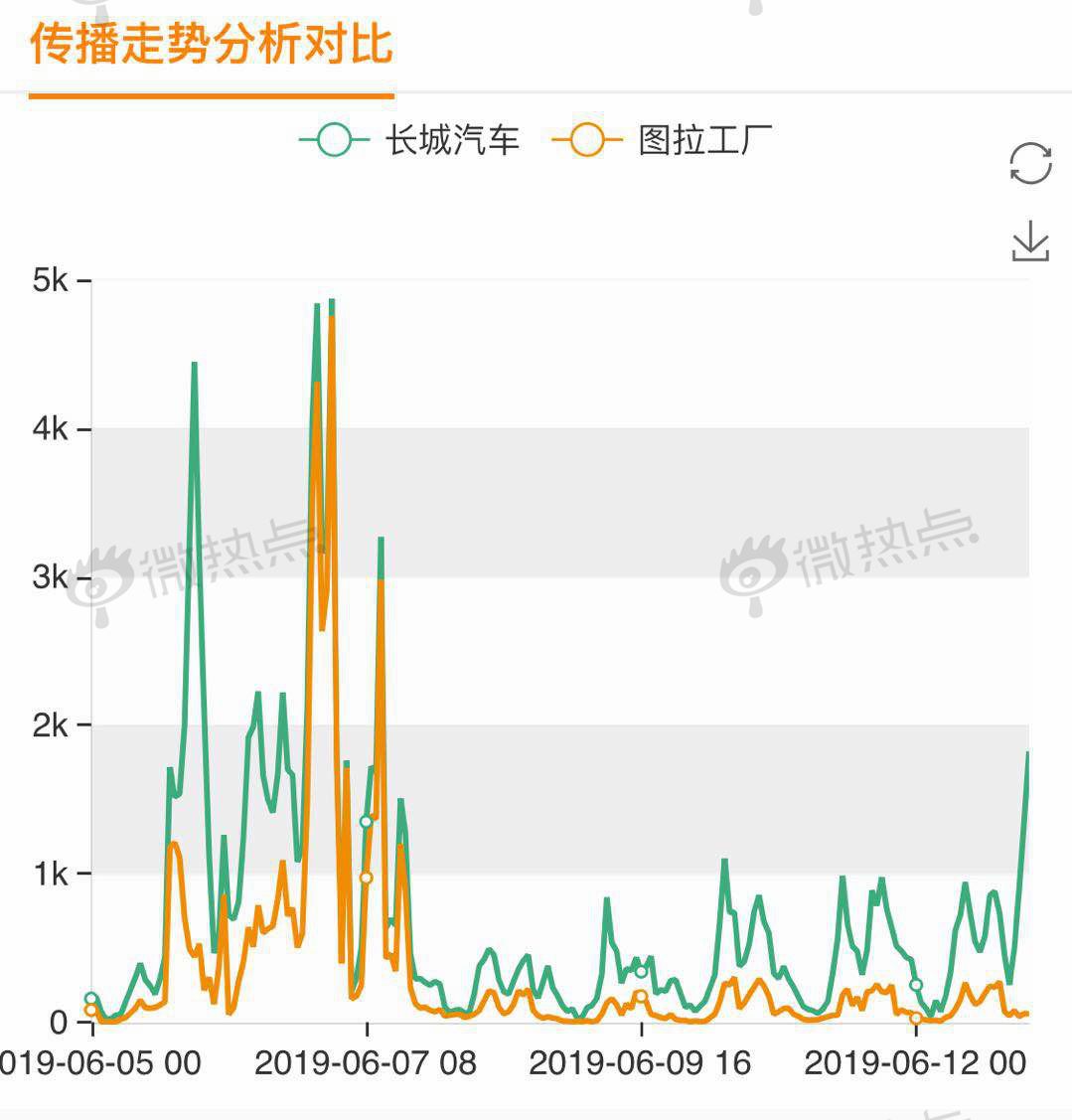 图拉工厂的投产也牵动着国人的心,让无数人为之动容,长城汽车与图拉工厂也成为了舆论热议话题。从相关信息传播走势来看,长城汽车与图拉工厂热度呈周期性波动,且波动趋势较一致,侧面说明二者热度具有一定相关性。