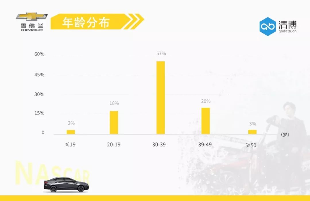 现今,一款新车不单单是颜值即正义就能满足挑剔的年轻人了,还需具有张扬的个性、热血沸腾的活力,用速度燃爆激情,给驾乘者无限痛快。此次雪佛兰科鲁泽赴NASCAR光速挑战赛所展示的魅力正契合年轻消费者的多重需求,想不吸引关注都难,其中30-49岁人群关注度最高,占比达到57%,高实力内涵加上明星助阵、线上线下相结合等抢眼操作,精准覆盖潜在用户。