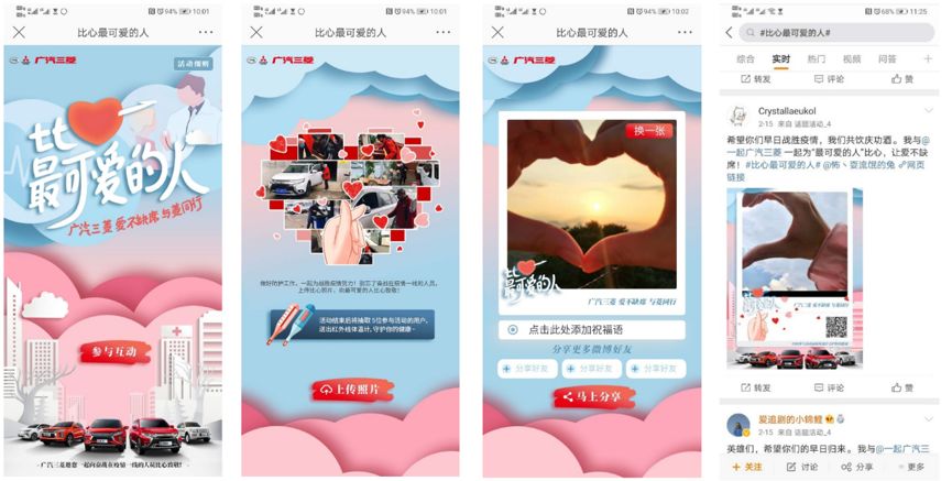 疫情当前,大家被迫进行自我隔离,苦闷却依然关心着抗疫一线的一举一动。表白一线医护人员不仅仅是发条微博,对于大众来说,更像是一份情感寄托。广汽三菱借助微博话题#比心最可爱的人#,与用户完成了一次深层次的情感交流,不仅扩大了品牌声量,更展现出疫情下品牌的社会责任感和公益形象。