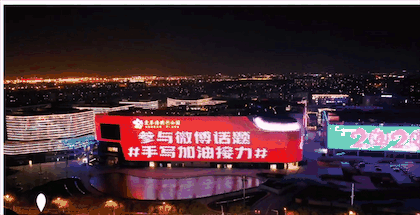 与此同时, @新浪娱乐 @微博明星 联合@星光公益联盟 @微公益 携手@东方网娱乐 一起在上海、广州、长沙、苏州、温州、无锡、沈阳、长春、威海、潍坊等10余个城市的地标建筑,以灯光秀的形式落地户外广告,将活动造势延伸至线下,体现全国各地万众一心。@新浪电视、@新浪娱乐、@新浪综艺、@新浪音乐、@新浪电影 等内容大V转发相关博文,视频播放量达89.9万次。