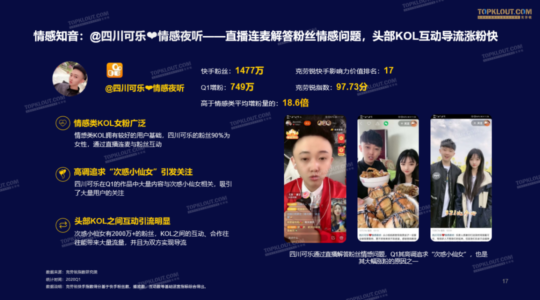 情感类KOL@四川可乐情感夜听在Q1涨粉近750万。