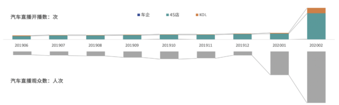 据《2020汽车行业直播研究报告》可知,购车的潜在消费者主要通过网络获取外界信息,观众人数增长量明显。车企、经销商、KOL开播数也明显上涨,且84%的受调研者表示,复工之后还会继续看直播。