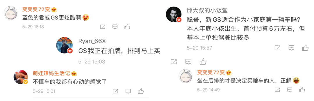 在5月29日,他刷微博看到关注很久的汽车博主@袁启聪 @袁启俊 发布了别克的直播链接。钟爱改装的“袁氏兄弟”,对全新君威 (配置|询价)GS青睐有加,小何决定先去直播间看看袁氏兄弟怎么说。