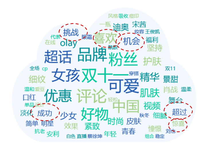 通过对微博上“超A”的评价进行分析,我们发现正面评价高达99.65%。热点词云中也充满了 “喜欢”“成功”“惊喜”等正向印象词。