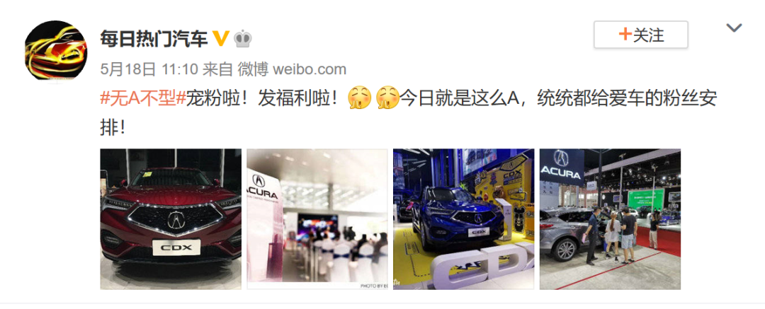 当小编第一次看到#无A不型#时在想,这是哪个天才的小脑袋瓜想出来的?讴歌的车标为“A”型,话题不仅与车型紧密相连,还与微博的流行语不谋而合。