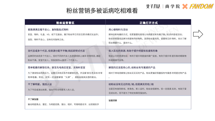 第一,要做饭圈的洞察,不能只做消费者洞察。需要了解粉丝本身,选择合作的明星的饭圈是怎么样的,过去的代言高分和低分怎么样的,饭圈的调查,是非常必要的,也是我们每次必须做的。