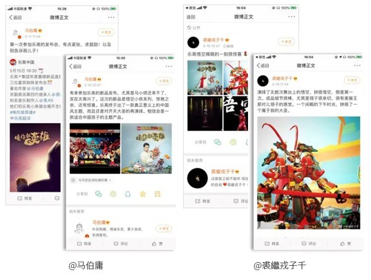 最终,这些预热博文共计覆盖人次近1200万,转发层级高达8层,互动人群兴趣涵盖美食、旅游、音乐、电影、娱乐等,多个圈层用户被乐高新品信息有效触达。用户纷纷表达出对悟空小侠新品的期待、好感。