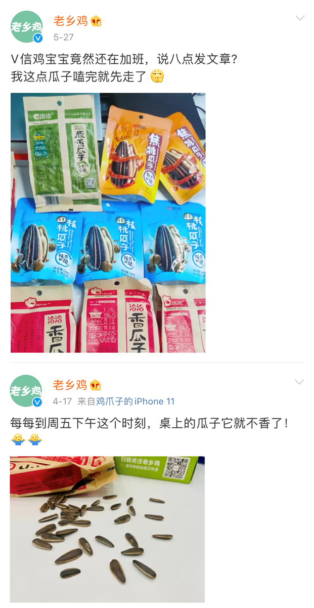 人格化的品牌设定,是品牌和消费者建立深层关系,获得消费者价值认同的捷径。老乡鸡官方每天换着花样抖机灵,调侃自己糊弄工作,玩得一手放飞自我,因为有意思,所以从不乏关注度,就连嗑瓜子都有人看得津津有味,这可能就是所谓是天赋吧!是女王我想也得不到的天赋。