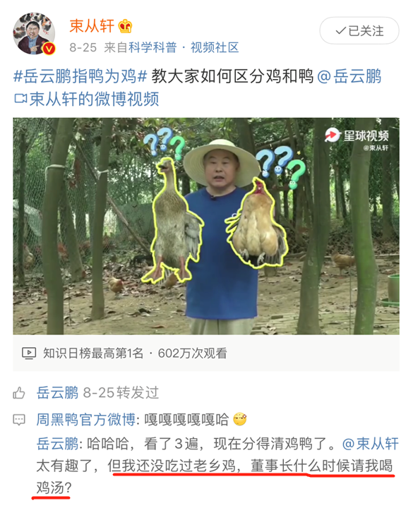 这究竟是鸭子出了轨,还是小鸡劈了腿???老乡鸡董事长一看陷入了深深的沉思: