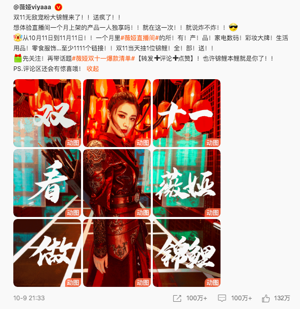 这一次双11,品牌就在微博,展现了与用户沟通的更多维度和方式: