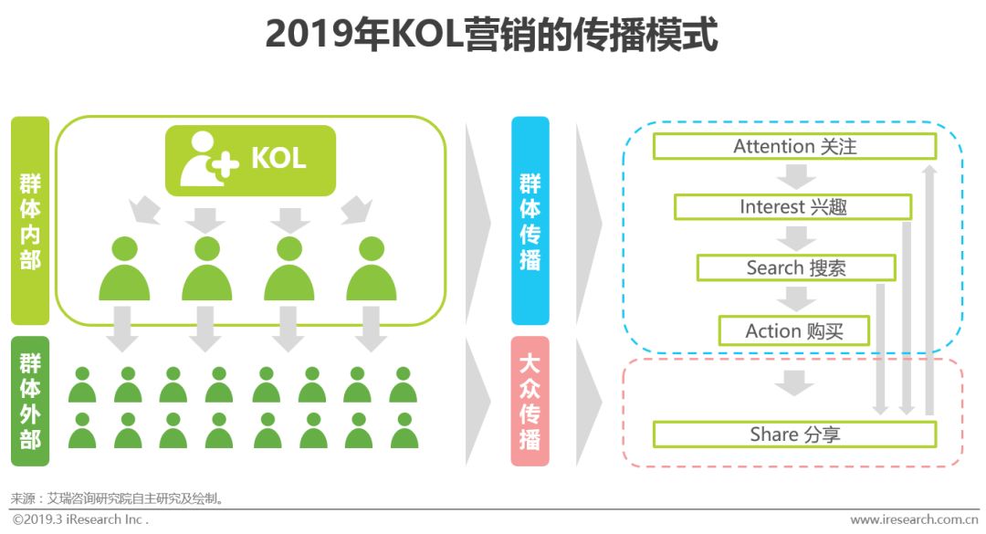 KOL之所以能够成为营销传播活动的重要角色,并且受到广告主青睐,关键在于其兼具了群体传播的影响力和大众传播的覆盖力。一方面,每个KOL的背后都有一个特定群体,因此通过KOL可以深度触达该群体内的成员,而基于群体传播中的群体意识和群体压力,成员对于营销信息有着更高的信赖度,通常来说群体关系越集中,群体边界越清晰,群体意识和压力越高。另一方面,互联网时代下,KOL可通过社会化媒体打破传播渠道的群体边界,同时所有群体成员对营销信息的二次传播,也会进一步扩大营销活动的覆盖范围。因此,可以说是互联网时代下群体传播与大众传播的融合,成就了KOL营销的诞生与崛起。