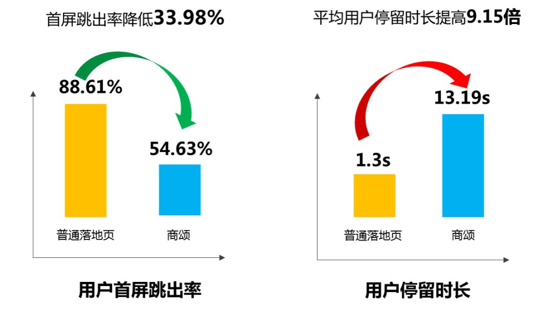 数据表明,此次投放中用户平均停留时长为13.19s,相比普通落地页提高了9.15倍,首屏跳出率降低33.98%,由此可见商颂所带来的整体沉浸感的增强,大大增加了用户在落地页内的停留时长,能更好的帮助广告主进行转化。