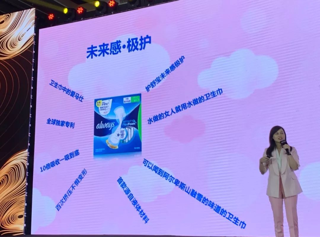 护舒宝有一个爆品叫液体卫生巾,这款产品在美国地区和欧洲地区都卖得很好,我们很想把这款产品推向中国市场,我们尝试了很多的文案创作:卫生巾中的爱马仕;女人是水做的,而液体的卫生巾更吸水。还创造了一个高大上的名字叫未来感极护,但这些产品的包装并没有带来很好的效果。