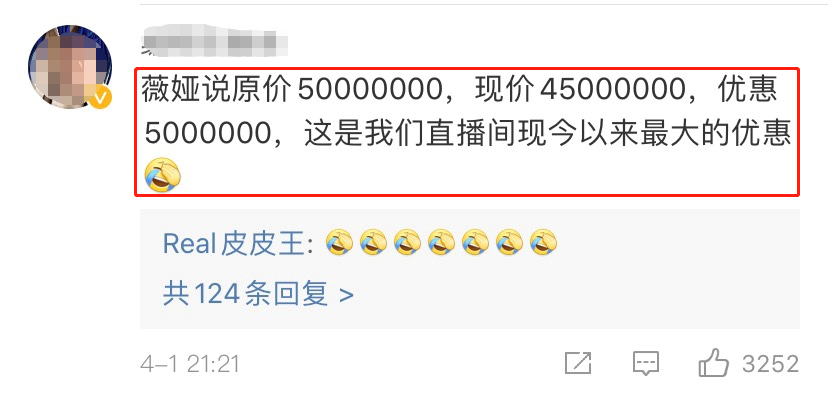 还有一部分网友评论:“薇娅直播间现今最大优惠”。