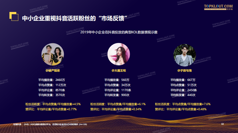 中小企业在投放KOL时,对KOL的量级选择、结算方式、投放目的等方面与品牌企业形成差异,加上中小企业数量庞大,未来KOL投放空间巨大。