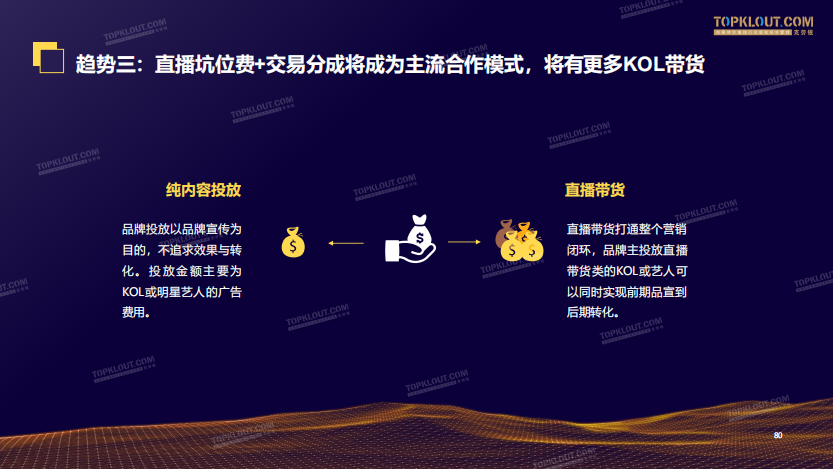 趋势三:2020年,直播带货势头强劲,直播坑位费+交易分成将成为品牌主流投放形式。