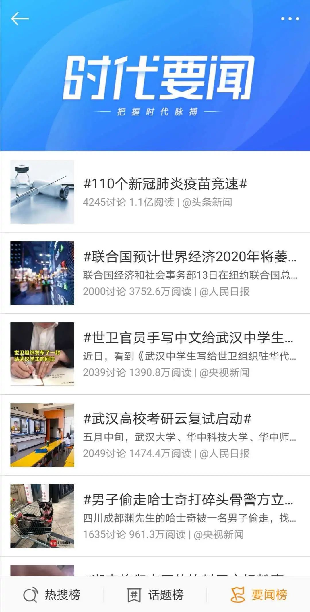 Mr.Wang 一直关注时事要闻,要闻榜是他每天必看的信息;