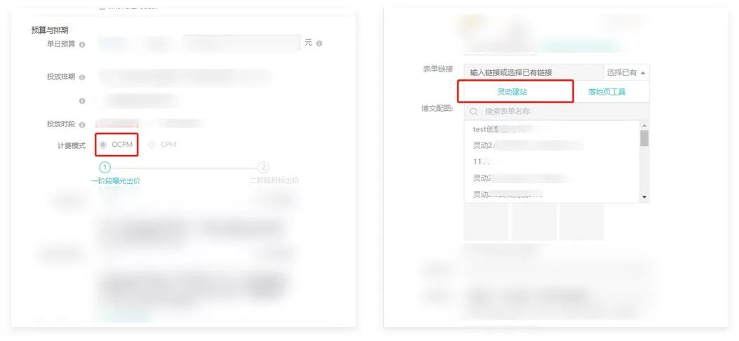 加入了微信“一键复制唤起”组件的落地页在投放时还支持以“微信复制”数据为导向,通过oCPX进行优化。广告主可以在创建广告计划时选择以“线索收集”为营销目标、“表单提交”为投放目标,勾选oCPX的计费方式,然后选中已搭建好的含有微信组件的灵动落地页,即可通过算法模型优化,投放给更易产生微信转化的目标人群。