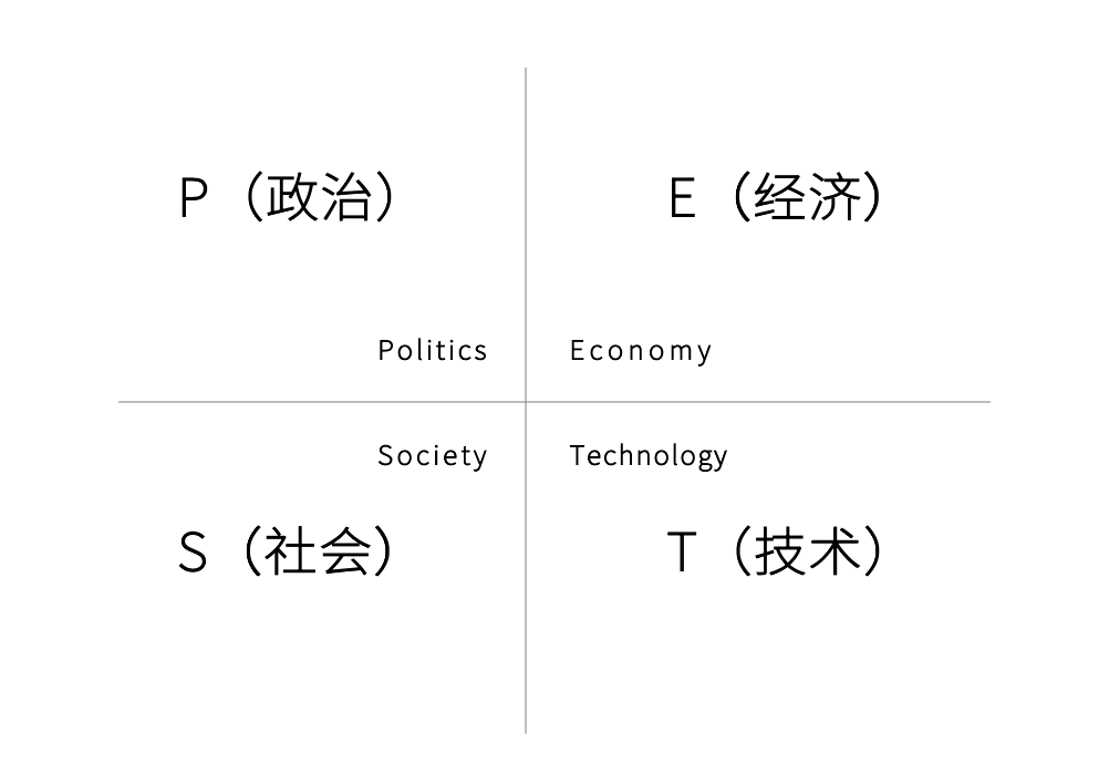 政治因素,有政治制度、政府政策、国家的产业政策、相关法律及法规等;经济因素,有经济发展水平、规模、增长率、政府收支、通货膨胀率等;社会因素,有人口、价值观念、道德水平等;技术因素,有高新技术、工艺技术和基础研究的突破性进展。