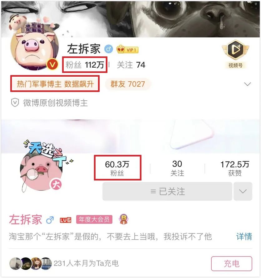 比如微博原创视频博主@左拆家 ,就是一个非常典型的“标杆”。他在微博爆火之前,在B站和抖音就深耕已久,但无论是在视频播放量还是互动量上,一直是不温不火。而在微博,只一条视频就为他引来了各大官微和不同领域大V联动传播,吸引了20万+粉丝。左拆家开通微博后,稳定的内容输出更是让他在一个月内增粉100万+,完成爆火。
