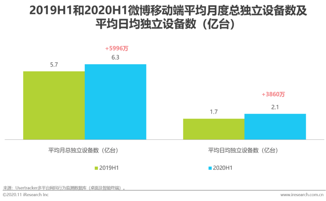 尽管面临激烈的流量竞争,作为中国移动互联网的“国民级”应用,微博用户仍在高基数下保持稳健增长,活跃率水平整体较高,同时触达更多下沉地区用户。艾瑞Usertracker多平台网民行为监测数据显示,2020年上半年微博移动端平均月度总独立设备数达6.3亿台,同比增长5996万台;同时,2020年上半年平均日均独立设备数达2.1亿台,同比增长3860万台。在用户地域分布方面,四线及以下用户占比同比连年增长,达到29%。